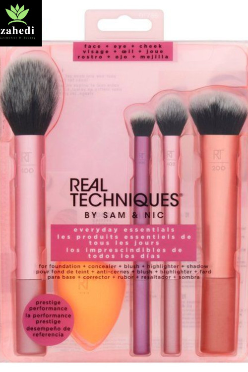 یک آرایش بی نقص و کامل با ست براش و پد ریلی تکنیک مدل Everyday Essentials. این ست شامل چهار عدد براش با کیفیت و پد میباشد که بدنهی تمامی آنها از آلومینیوم سبک و مقاوم ساخته شده و همچنین موی این براشها از بهترین نوع موی مصنوعی مناسب براش آرایشی میباشد که عمر زیادی دارد و به خوبی تمیز میشوند.