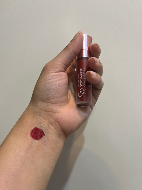 رژ لب مایع کرمی مات Soft & Matte گلدن رز با فرمولاسیونی پیشرفته و بروز وارد بازار شده است این رژلب همانطور که از نامش پیداست مواد کرمی مانند دارد و همچنین نمایی نسبتا مات و مرطوب به لب می بخشد. از مهمترین ویژگی این رژلب نرم بودن آن روی لب می باشد که برای کسانی که لب هایشان خشک و ترک دارد می تواند گزینه مناسبی باشد.این محصول بی نظیر با بافت خامه ای و نرم خود پوشش کامل به لبهای شما میبخشد و رطوبت و لطافت لبهای شما را تضمین میکند و همچنین این رژ لب فرموله شده با نرم کننده و روغن جوجوبا و روغن آوکادو میباشد.حاوی ویتامین های A وE می باشد.روی لب خشک نمی شود و روی لب پوسته نمی شود.