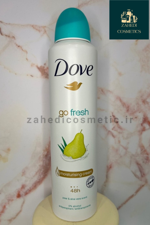 اسپری داو گلابی (Dove Go Fresh Pear & Aloe Vera) یکی از محبوبترین اسپریهای بدن و ضدتعریق برند داو است که رایحهای ملایم، خنک و شیرین از ترکیب گلابی و آلوئهورا دارد. این محصول علاوه بر کنترل تعریق تا ۴۸ ساعت، با داشتن فرمولاسیون غنی از کرم مرطوبکننده داو، از خشکی و تیره شدن پوست زیر بغل جلوگیری میکند. رایحهی گلابی تازه، حس طراوت و شادابی را در طول روز به شما هدیه میدهد و برای استفاده روزانه در تمام فصول سال ایدهآل است.