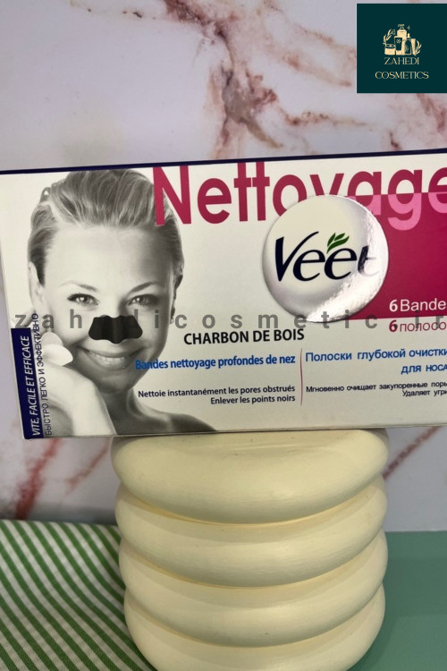 چسب بینی پاک کننده جوش سرسیاه ویت Veet Charcoal Nose Cleaning Plaster/ بسته 6 عددی